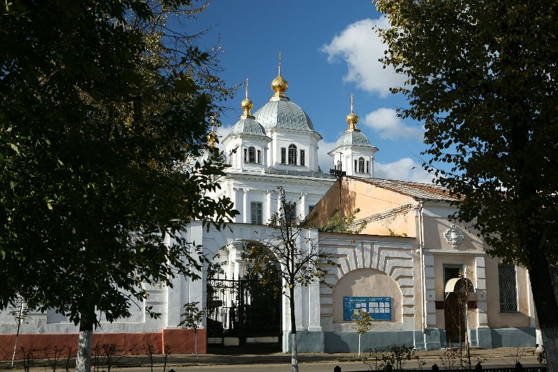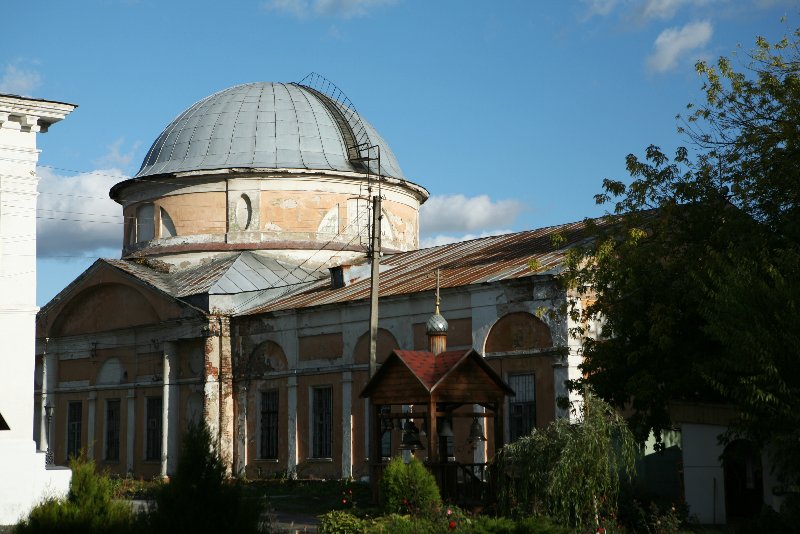 Храмы и постройки монастыря: 1. Казанский собор (1835-1845) 2. Сретенская церковь (1878-1881) 3. Покровская церковь (1820) 4. Келейные корпуса 5. Звонница 6. Стены и башни
