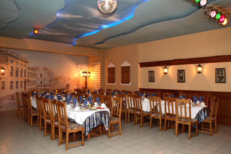 В меню представлены в основном блюда русской кухни, что вполне соответствует оформлению зала в стиле трактира.
