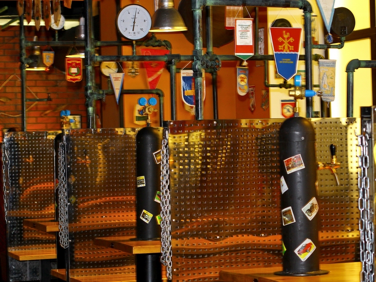 Скучные будни в нашем ресторане перестанут казаться такими, когда Вы встретите наших сотрудников в классическом "пышном" настроении и образе. И даже пиво не может быть скучным, когда оно в шатлах или коктейлях, а если рядом с Вами стол саморазлива, тогда точно не придется скучать. А наши закуски - просто рай для гурмана. Шашлык может не просто лежать, но и висеть, колбаса в метр длиной - тоже не вымысел! Живая музыка и дискотека по выходным заставляет Вас жить так, что бы хотелось жить. А утром мы можем дать Вам заряд бодрости на целый день с нашими обедами из столовой, на вынос в пластиковой посуде, которые можно употребить и в заведении. Наша работа - Ваша безопасность и здоровье, так как мы все готовим без ГМО! Ваши друзья и коллеги будут приятно удивлены, если свой юбилей или День рождения они проведут в нашей компании со скидками и подарками от заведения. Вот пять причин, чтобы зайти к нам! Здесь брутально и прикольно одновременно: дерево, кожа, металл, а еще столько деталей – глаза разбегаются. На стенах рыболовные сети и почтовые марки (огромная коллекция владельца!), советские плакаты и внушающие вентиляторы, а в туалетах – души, шайки-лейки и даже противогазы :) Встречают вас девчонки-официантки ну очень колоритные, пышненькие очаровательные со своим шармом. ЭТО РАЗ. Ну, и разумеется еда: колбаса метровая с достоинством, удивительный шашлык на кочерге, разнообразные закуски и море живого разливного пива. Кстати, можно выпить кружечку другую за баром, а если этого мало, возьмите пиво в четырехлитровых шатлах, а самые стойкие присядут за столик с пивным счетчиком – как в такси – платишь, сколько выпил. ЭТО ДВА. Днем – столовая с вкусными обедами и демократичными ценами, а еще Вам предложат взять выпечку в дорогу с комплиментом в подарок, а вечером – живая музыка и дискотека, скоро интересный матч? Собирай команду болельщиков и приходи к нам. ЭТО ТРИ. По выходным – зажигаем на вечеринках. Артисты классные, ведущий чумовой, анимация сумасшедшая… А еще – дни рожденья, и не просто…, а с поздравлениями от сотрудников ресторана с вручением фирменного трехлитрового коктейля. А потом мальчишники, романтик-пати и прочее. ЭТО ЧЕРЫРЕ. Здесь каждый становится своим уже через несколько минут, да и нашим практически тут же. Присоединяйся! ЭТО ПЯТЬ. Меню (дата обновления - май 2012г.)