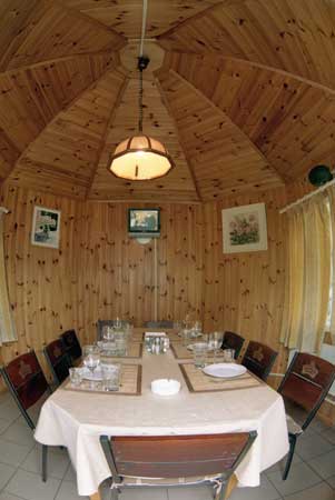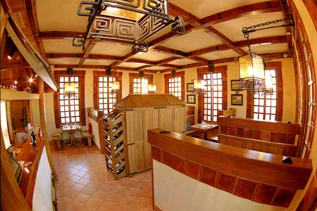 Ярославль. Рестораны Ярбург В живописном уголке парка, в окружении тенистых ясеней и берез, расположен красивый дом красного кирпича под зеленой черепицей. Из его окон льется мягкий свет и музыка. Это ресторанный комплекс «Ярбург», который принимает гостей с 2003 года. Имя «Ярбурга» объединило в себе лучшие традиции гостеприимства старинной ярославской земли («Яр»-Ярославль), современный европейский сервис и дизайн интерьера («Бург» с немецкого «крепость, город»). Вашему вниманию предлагаются: ресторан, банкетный зал на 30 мест, два VIP-кабинета на 8-10 мест, гриль-бар на 70 мест. В теплое время года можно чудесно отдохнуть в живописном внутреннем дворике в окружении роз, жасминов и красивых цветов. Здесь охотно отдыхают с детьми и даже с младенцами в колясках. Для маленьких гостей – детское меню. Визитная карточка «Ярбурга» - европейская кухня высокого качества. Наш шеф-повар творит дивные вкусовые композиции. В меню ресторана около 160 блюд. Искусный гриль-мастер приготовит для Вас ароматные блюда из мяса, рыбы, птицы и овощей. Каждые 2 месяца происходит традиционное обновление меню. Успешно прошли дни итальянской, еврейской, русской, французской и восточной кухонь. 400 постоянных посетителей, имеющих карту почетного гостя – лучшая рекомендация ресторану «Ярбург» Особенно ценны для нас дипломы мэрии г.Ярославля как Лучшему предприятию сферы услуг по культуре обслуживания населения в 2004 году, «Любимец публики» 2006 г., за лучший ландшафтный дизайн в 2006 и 2007г.г. Следуя русской пословице «Лучше 1 раз увидеть, чем 100 раз услышать», приглашаем Вас в «Ярбург» удостовериться в правдивости сказанного ежедневно с 11.00 до 24.00, по пятницам и субботам до 1.00. Продление Вашего праздника возможно по договоренности. Для ценителей табака предлагается уютный холл-сигарная с мягкими кожаными креслами, теплым освещением и керамическими барельефами авторской работы на стенах.